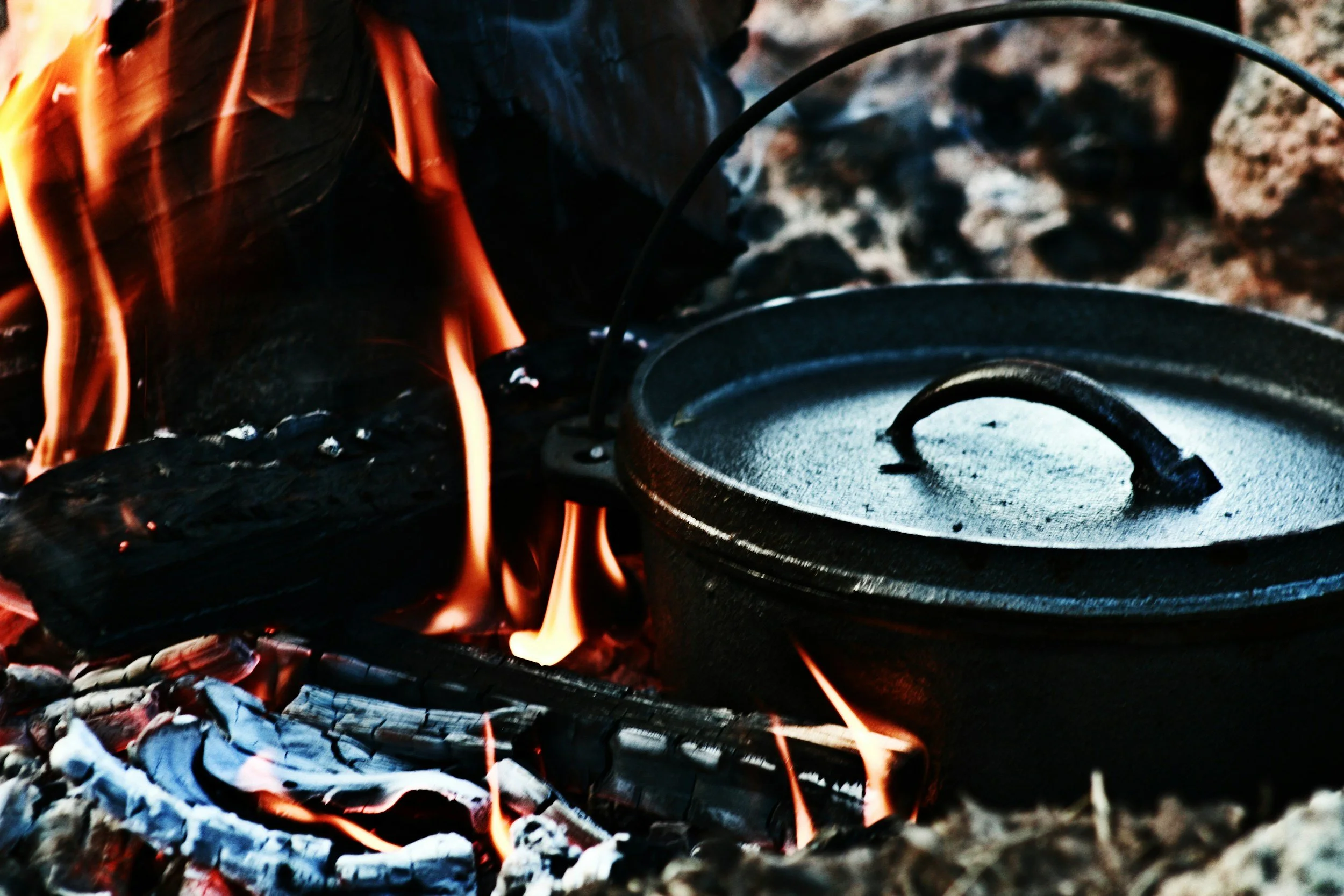 After your fishing adventure, relax and enjoy a freshly prepared, homestyle Dutch oven meal outdoors.